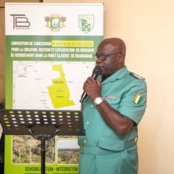 Remise de certificats de participation à l'atelier de formation aux outils de certification Côte d'ivoire Normalisation - Codinorm par notre sponsor Officiel Tropical Bois s.a, notre paneliste et président de la Facaci Officiel Mr Hermann Doho, et Mme la représentante de CODINORM.