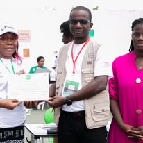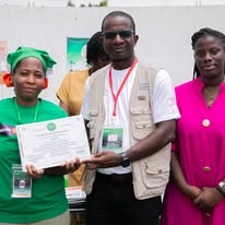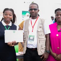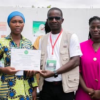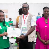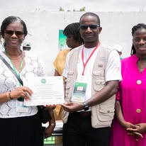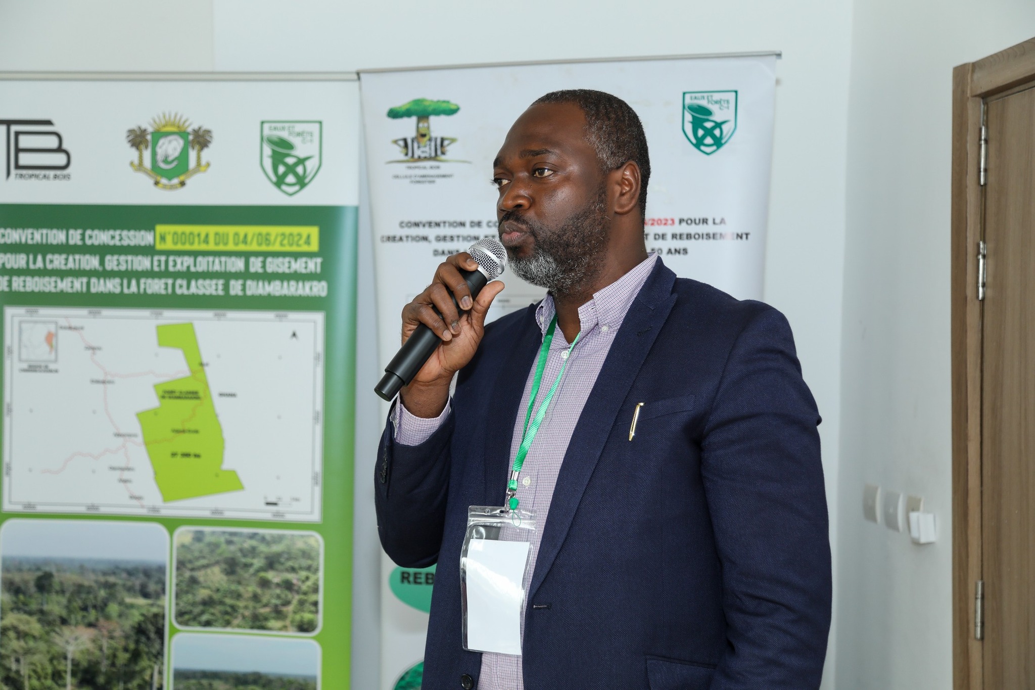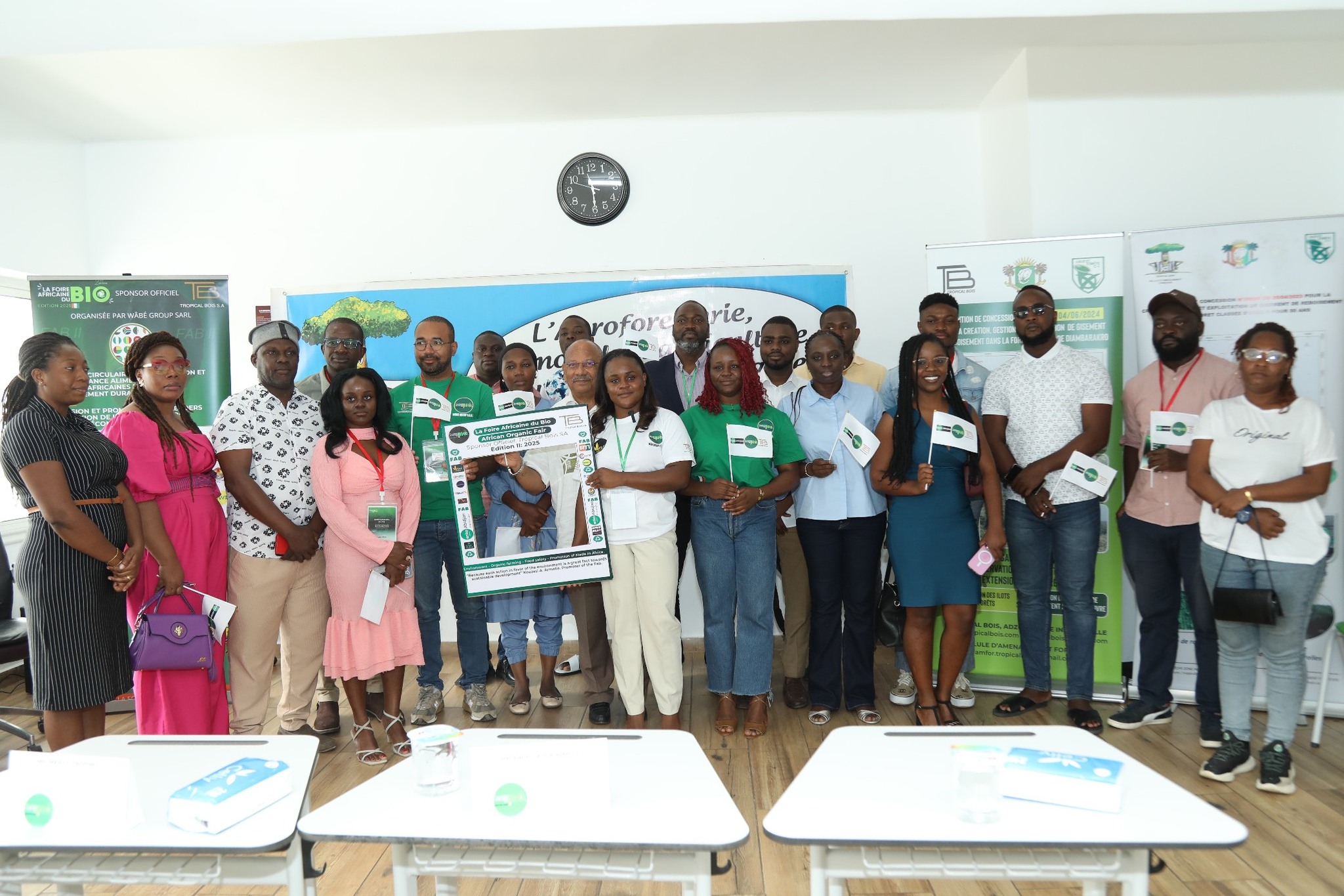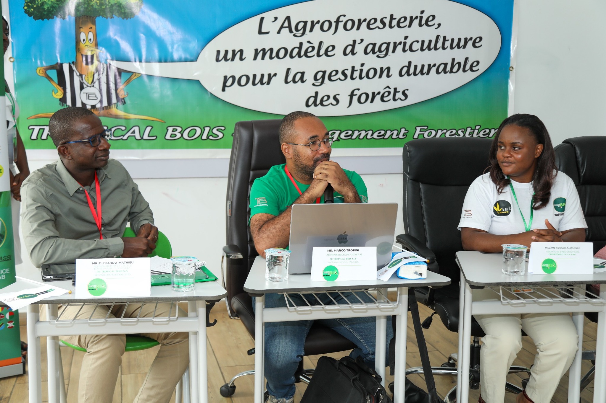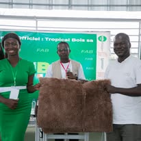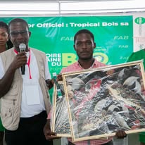 Remise de certificats de participation à l'atelier de formation aux outils de certification Côte d'ivoire Normalisation - Codinorm par notre sponsor Officiel Tropical Bois s.a, notre paneliste et président de la Facaci Officiel Mr Hermann Doho, et Mme la représentante de CODINORM.